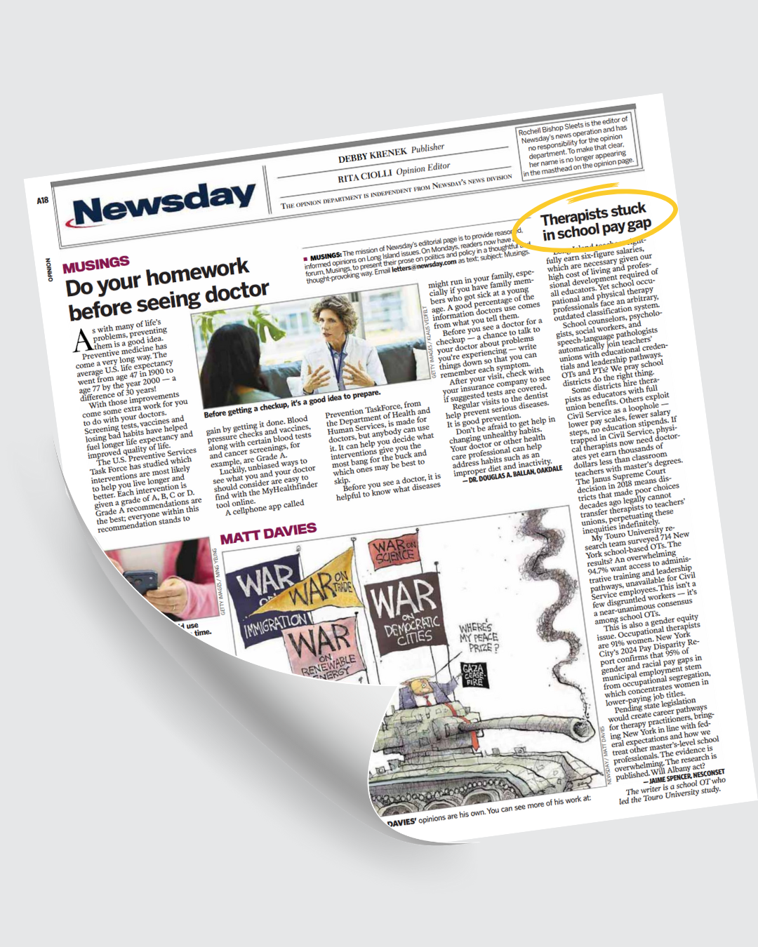 Spencer, J. (2024, October 20). Therapists stuck in school pay gap. Newsday, A18.